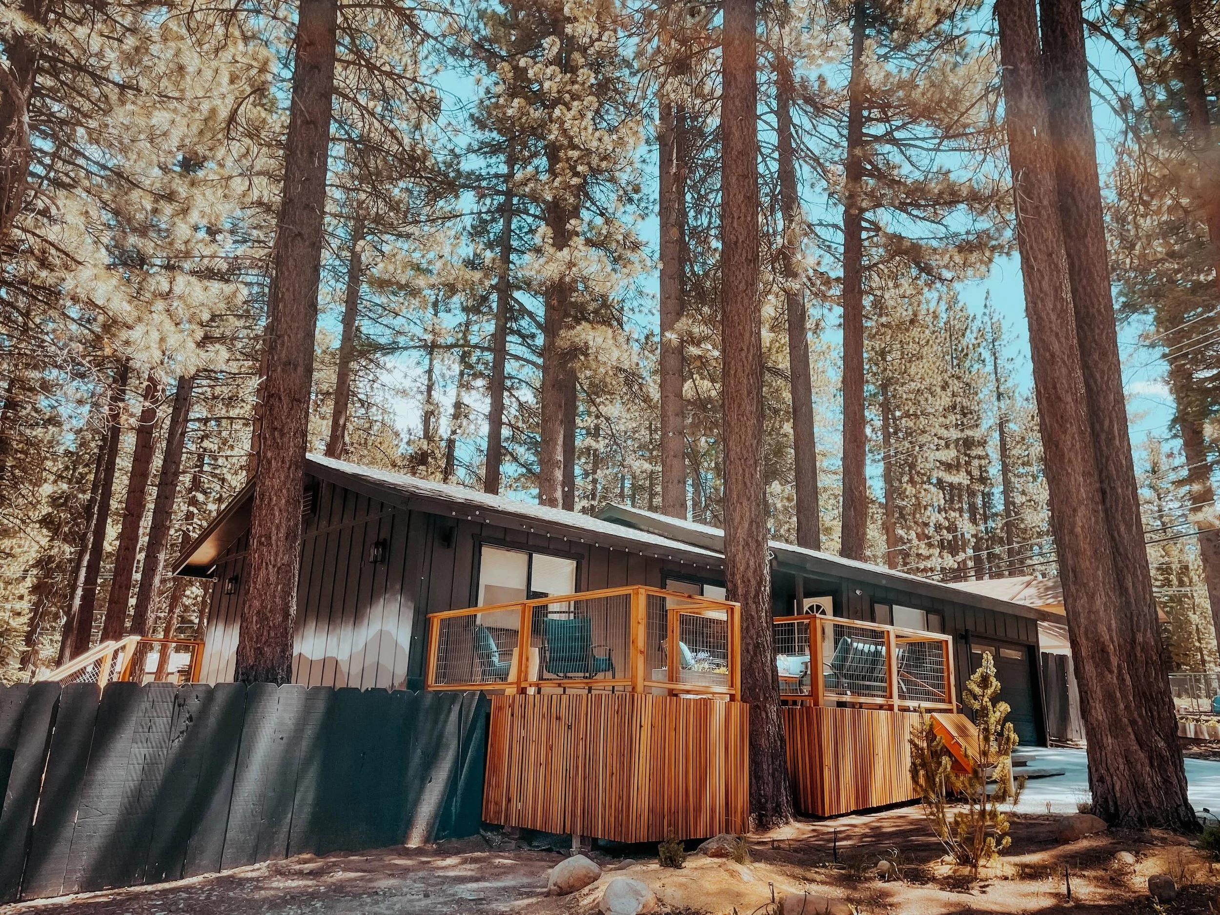 Indulge in tranquility and relaxation: the Tahoe Bear Chalet is a modern alpine retreat fusing natural beauty with contemporary luxuries. Nestled on a large partially-fenced corner lot, the property backs into a pine grove nature preserve and is surrounded by many hiking and mountain biking trails. Soak in the peace and quiet of nature while enjoying year-round adventures!